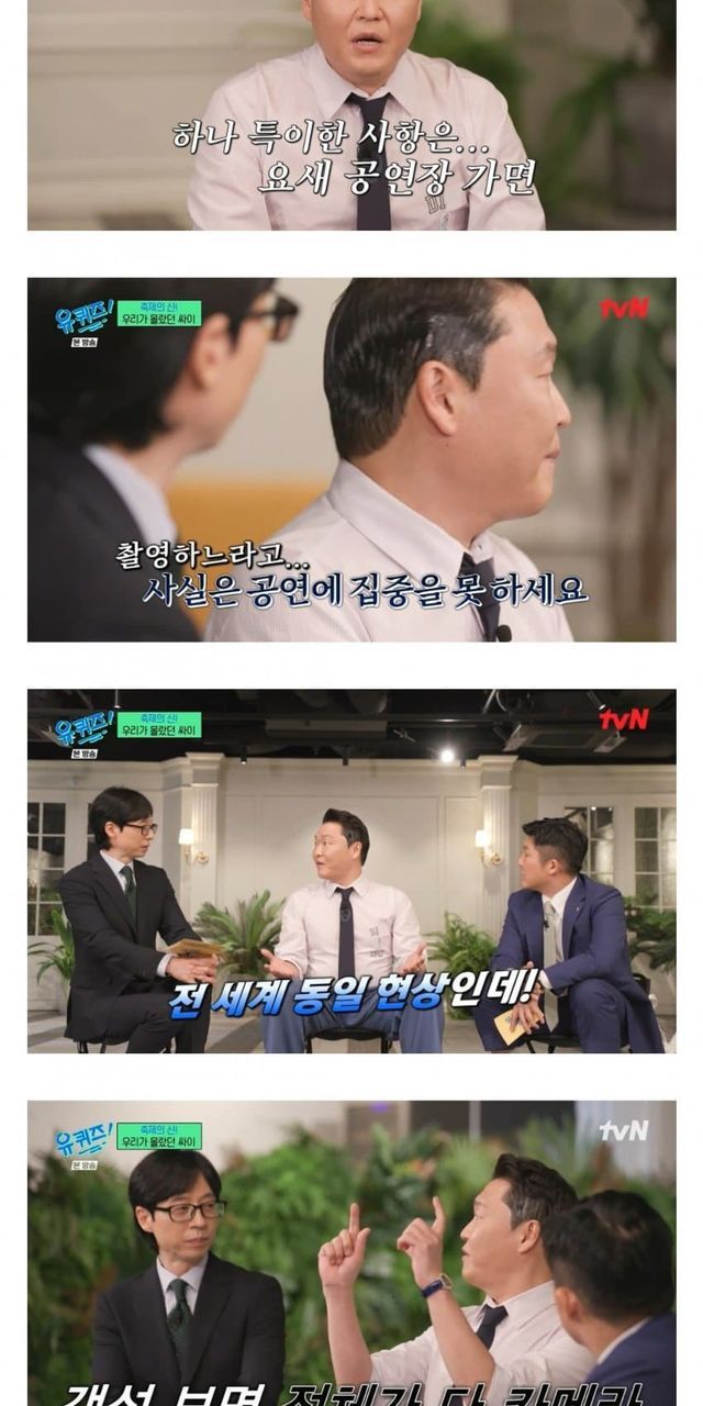 요즘 공연장 트렌드는 이전과는 다르게 관객의 적극적인 참여와 소통이 중요시된다. 싸이는 이러한 변화에 맞추어 공연을 기획하며, 관객들과 더 가까이에서 소통할 수 있는 방법을 탐구하고 있다. 이를 통해 더 높은 에너지와 즐거움을 전달하고 있다.