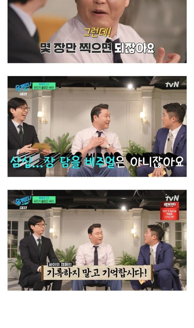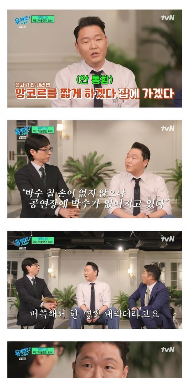 싸이는 대한민국의 대표적인 가수로, 글로벌 히트곡 "강남스타일"로 유명하다. 독특한 퍼포먼스와 에너지 넘치는 무대로 전 세계 팬들에게 사랑받고 있다. 최근에는 공연장 문화에 대한 그의 인사이트로 주목받고 있다.