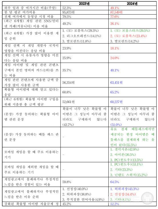 이는 한국게임정책자율기구(GSOK)가 23일 발표한 게임문화에 대한 체계적인 연구·조사를 목적으로 매년 시행하고 있는 청소년 및 일반인 게임이용자 조사의 2024년 1차 보고서에 나온 내용이다.
