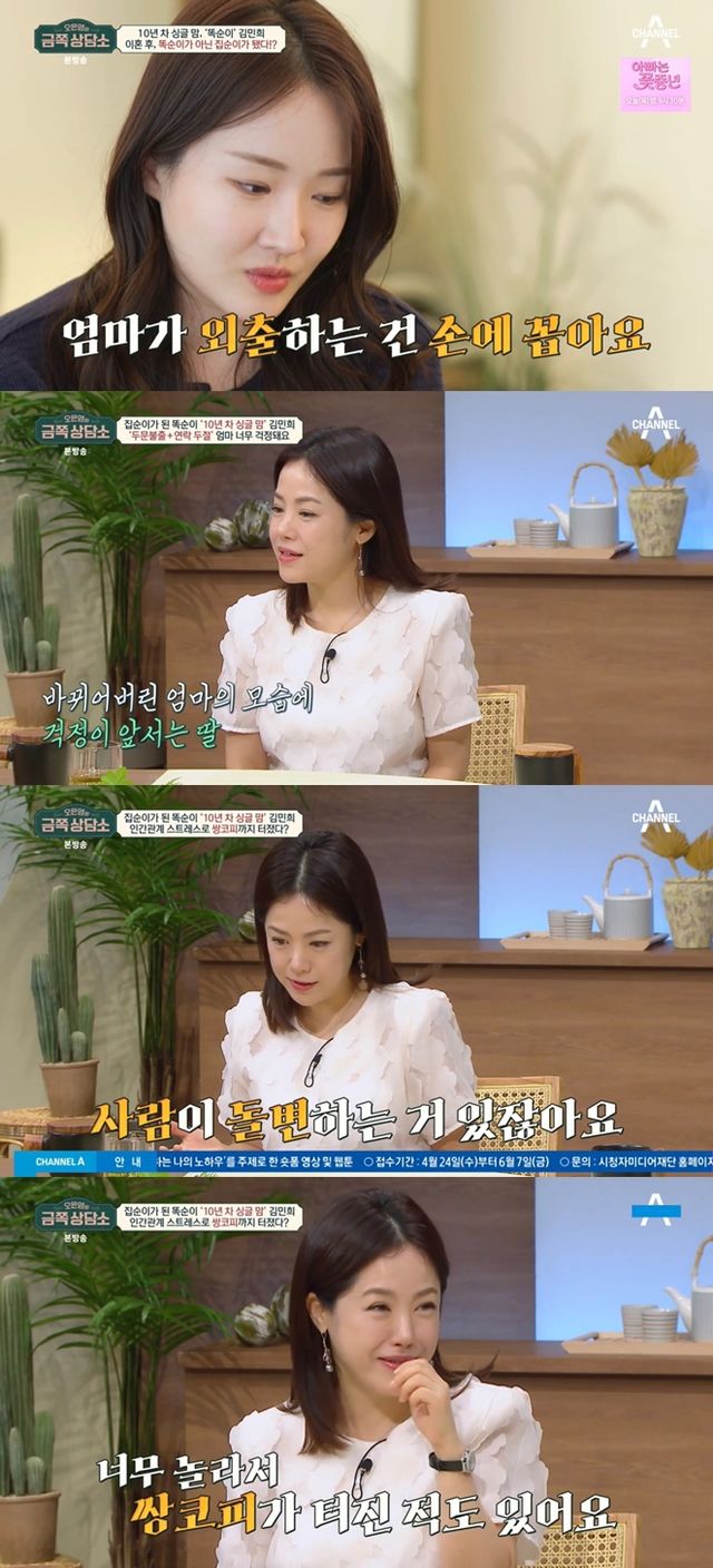 23일 방송된 채널A '오은영의 금쪽 상담소'에는 추억의 아역스타 '똑순이' 김민희가 오은영 박사를 찾아 고민을 털어놨다.