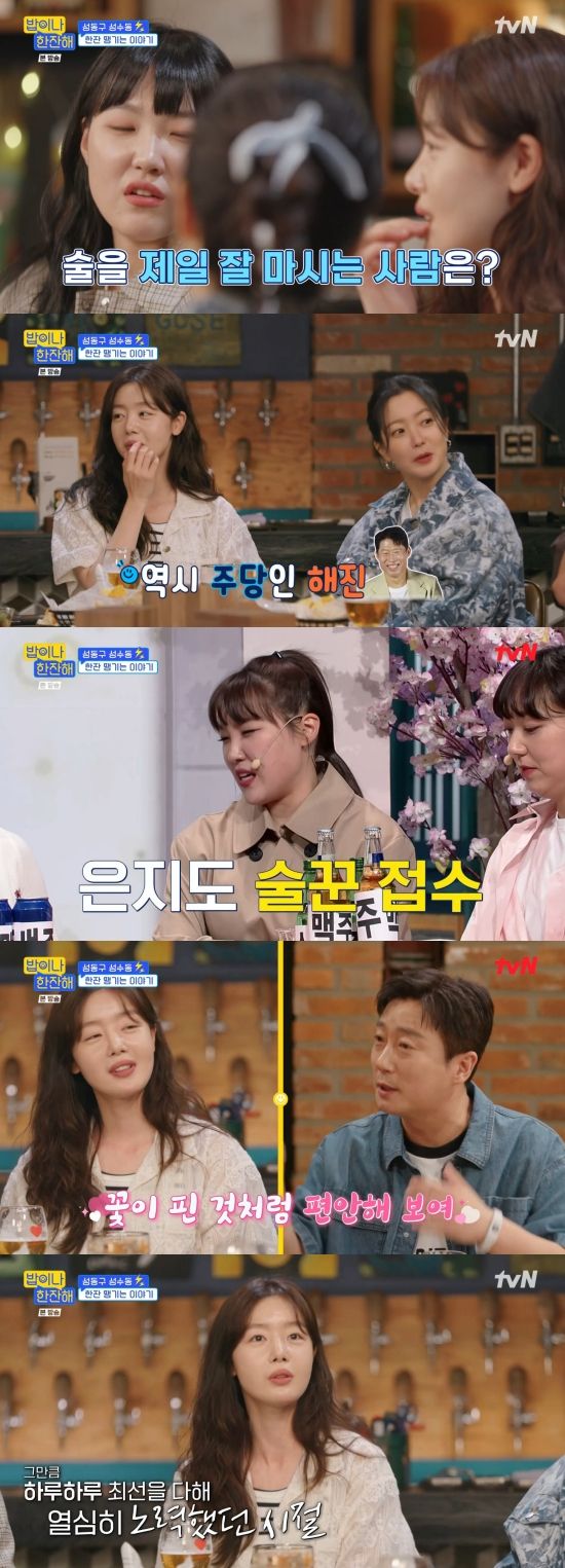 특히 이은지는 "선화 님 너무 보고 싶었던 게 한 주당 하시지 않냐. 너무 만나보고 싶었다. 두 분이서 술 드셔보신 적도 있냐"라며 궁금해했고, 김희선은 "우리 (영화) 촬영하면서도 먹었다. 감독님, 피디님 다"라며 못박았다. 이은지는 "누가 제일 잘 먹냐"라며 질문했고, 김희선과 한선화는 유해진을 꼽았다.