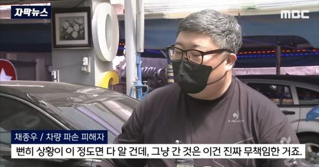 차량 주인 나중에 차 박살나있는거보고 어리둥절 자기돈으로 수리하게 생김