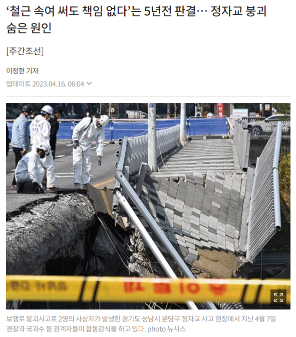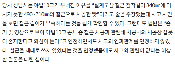 2018년 야탑10교 붕괴되었을 시 법원이 시공사의 책임이 없다고 판결함