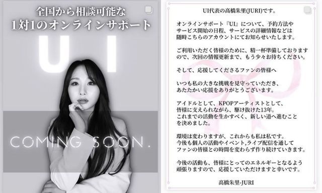 쥬리는 일본 내 지망생들을 대상으로 한 컨설팅 업체 ‘UI’를 설립한 것으로 보인다. 자신을 ‘UI’ 대표라고 설명한 쥬리는 “응원해주시는 팬 여루븐께 항상 저의 도전을 지켜봐주시고 따듯한 응원해주셔서 감사하다. 아이돌로서, 케이팝 아티스트로서 여러분들에게 힘을 실어주면서 달려온 13년. 지금까지의 활동을 살릴 수 있도록 새로운 길로 나아갈 예정이다”라고 밝혔다.