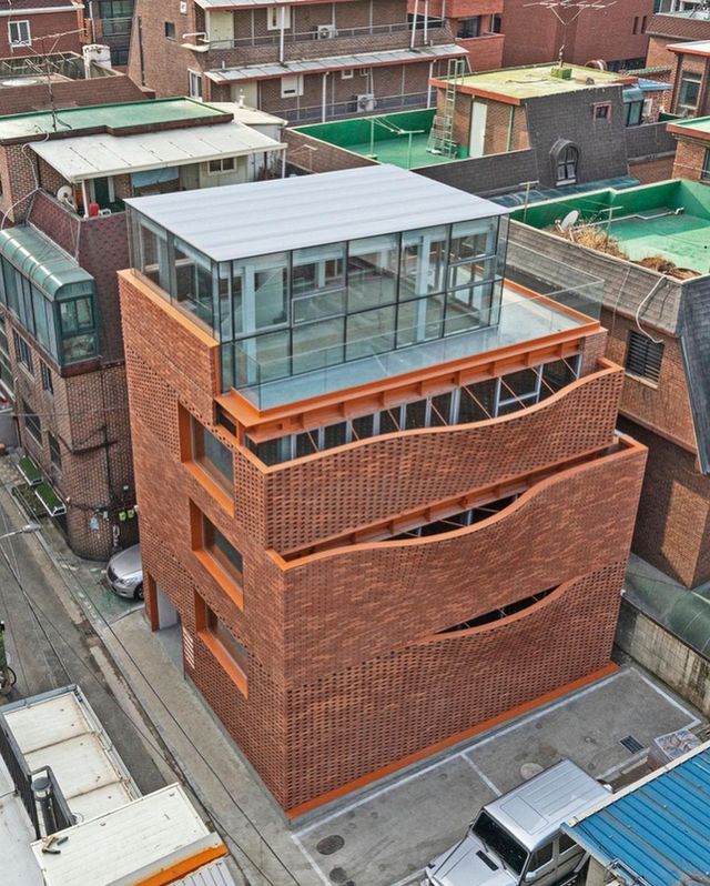 상업시설 용도로 리모델링 한 건데 성수동의 상징적인 붉은 색 벽돌을 차용해서 디자인적으로 비틀었다고 함.