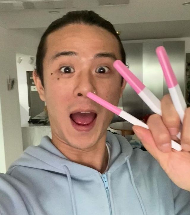 공개된 사진 속 빈지노는 임신테스트기를 여러 개 손에 들고 기뻐하고 있는 모습이다. 또 아내 미초바의 배 사진을 함께 공개했다.