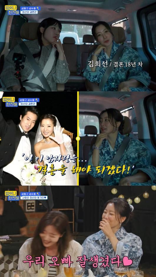 이특은 김희선의 남편에 대해 "형님이 잘생기고 몸도 좋으신데 술도 잘 마신다"라고 칭찬했으며, 한선화는 "선배님이 사랑이 넘치신다. 부산영화제 갔을 때 ‘달짝지근해’ 팀이 앉아 있었다. 매번 회식 때문에 늦으면 집에 오빠가 걱정 안 하냐고 했더니 ‘우리 오빠 잘생겼다’고 하셨다"라고 말하며 김희선의 남편에 대한 김희선의 애정을 드러냈다.