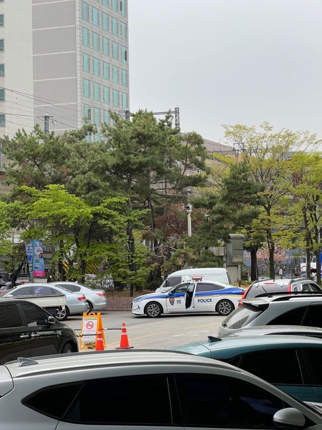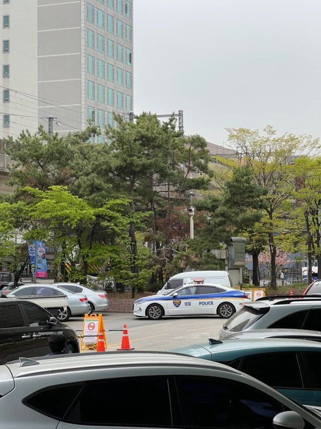 경찰차 근터에서 한 아저씨가 계속 두리번 하면서 서있길래
