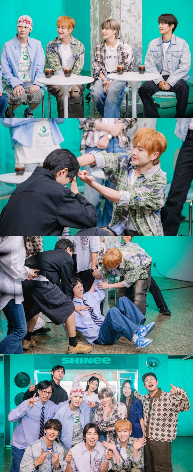 24일 MBC ‘놀면 뭐하니?’ 측에서 공개한 사진 속에는 ‘놀면 뭐하니?’ 멤버들과 만난 샤이니 온유, 키, 민호, 태민의 모습이 포착돼 눈길을 끈다. 특히 온유는 오랜만의 예능 출연이 어색해 적응하는 모습을 보여준다.