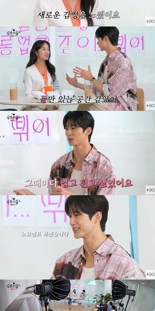 이어 김혜윤은 "새로운 감정을 느꼈다. 지구상에 우리 둘밖에 안 살아남았는데"라며 입을 열었고, 변우석은 "둘만 있는 공간 같았다. 행복할 때도 울고, 그런 거 할 때마다 업고 튀고 싶었다"고 고백했다.