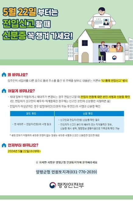 군 관계자는 “신분확인 절차 강화로 전입신고 시 시민들이 현장에서 불편을 겪지 않도록 관련 개정 내용을 널리 홍보하고 있다”고 말했다.