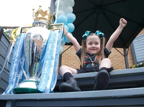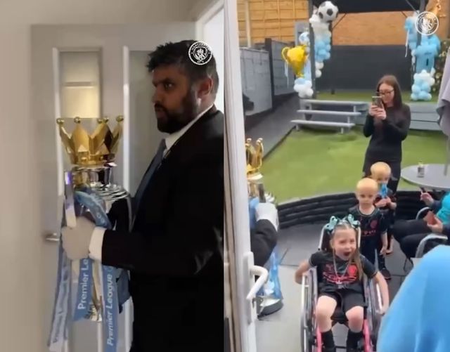 (엑스포츠뉴스 권동환 기자) 잉글리시 프리미어리그 사상 첫 4연패에 성공한 맨체스터 시티(맨시티)가 트로피를 들고 희귀 질환과 싸우고 있는 어린 소녀 팬에게 찾아갔다.