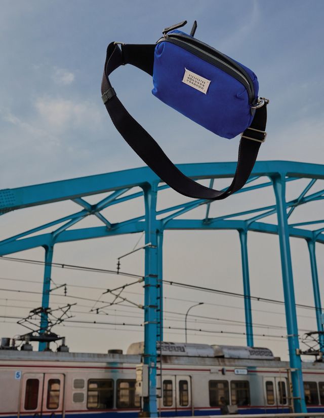 비비드 블루 컬러의 글램 슬램스포츠 보디 백 Maison Margiela.