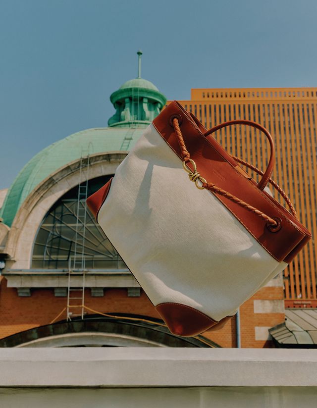 라피아 효과를 더한 패브릭 토트백 Marni.