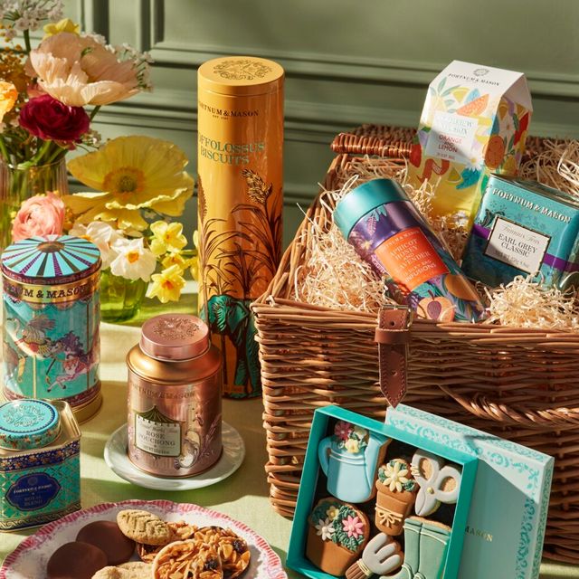 선물의 품격을 높여줄 티웨어 제품도 빠질 수 없습니다. 피카딜리 스토어의 다이아몬드 주빌리 티 살롱의 벽지에서 영감을 받은 디자인의 티컵과 소서는 물론, 브랜드 시그니처 컬러인 오드닐 색상을 담은 머그 등은 햄퍼 선물을 더욱 풍성하게 만듭니다. 포트넘 앤 메이슨의 맞춤형 햄퍼로 일상을 더욱 특별하게 만들 수 있죠.