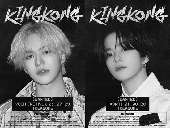 YG엔터테인먼트는 지난 23일 공식 블로그에 트레저 윤재혁, 아사히 개인 포스터를 게재했다. 최현석·요시·준규·하루토·박정우·소정환에 이어 신곡 'KING KONG' 콘셉트에 완벽히 녹아든 두 멤버의 아우라를 엿볼 수 있다.