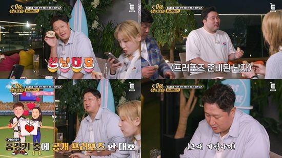 미혼 박광재는 "주위에서 그런 말들 많이 듣긴 했다. 프러포즈 꼭 하라고. 안 하면 평생 간다고"라며 부러운(?) 눈빛으로 건너편에 앉은 이대호를 바라본다.