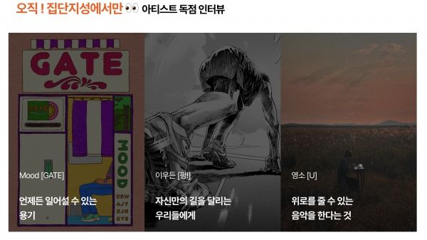 집단지성은 지난 3월 음악, 영상, 문학 등 여러 아티스트들의 작품을 한 주제로 묶어 모아볼 수 있었던 기존의 웹진 연재 방식에서 아티스트들의 작품 시리즈를 개별적으로 연재하는 방식으로 개편했다. 예술 시장에서 아티스트들이 의지할 수 있는 울타리를 만들어주는 방법이라 판단했기 때문이다.