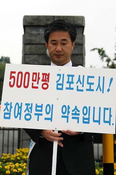 당시 김포시는 이런 정부와 국방부의 처사에 대해 크게 반발하여 국방부 앞에서 1인시위까지 했었고, 그 결과 김포한강신도시는 현재 규모(약 350만평)로 재지정될 수 있었음.