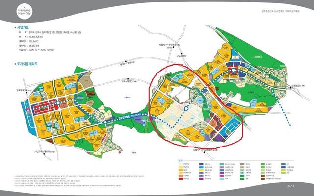 김포한강신도시 계획은 1/3(약 150만평)로 짤려 저 부분만 진행되는 것으로 결론이 나게 되었음. 그리고 신도시가 축소되는 과정에서 지하철 역시 경전철로 계획이 바뀌었음.