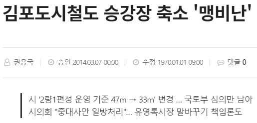 그렇게 수많은 갈아엎기에 시장의 똥고집으로 인한 뻘짓까지 얻어맞은 김포도시철도는 결국 지옥철로 명성을 날리게 되었다, 이런 이야기임.