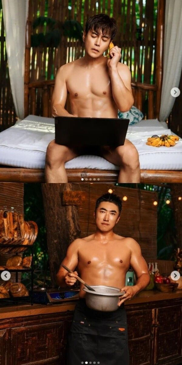 반면 유세윤은 등 근육을 과시하는 포즈만 공개하며 멤버들과의 차이를 드러냈다.