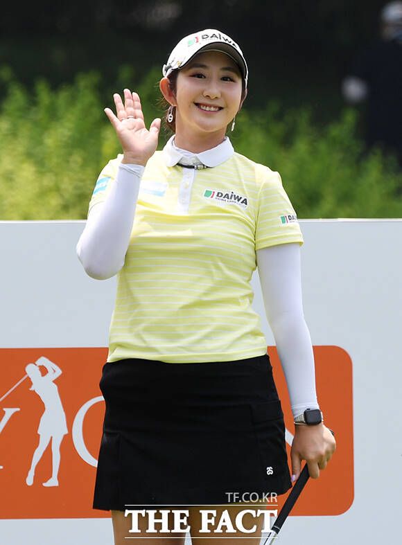 KLPGA투어 E1채리티 오픈 1라운드가 24일 경기도 여주시 페럼클럽CC에서 열린 가운데 배선우가 1번홀에서 환한 미소를 짓고 있다. /여주=배정한 기자