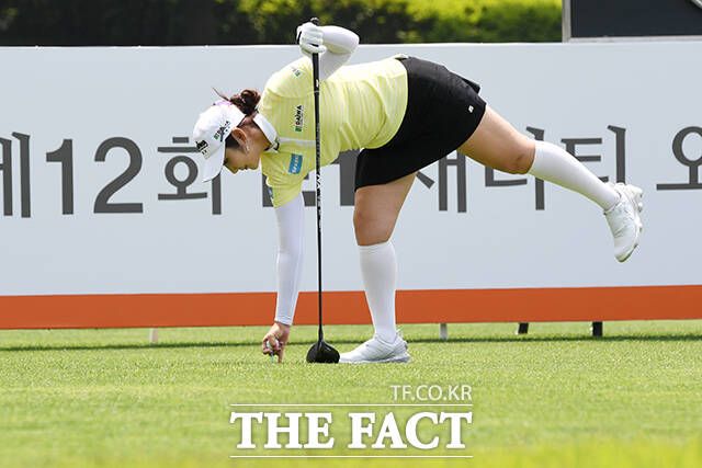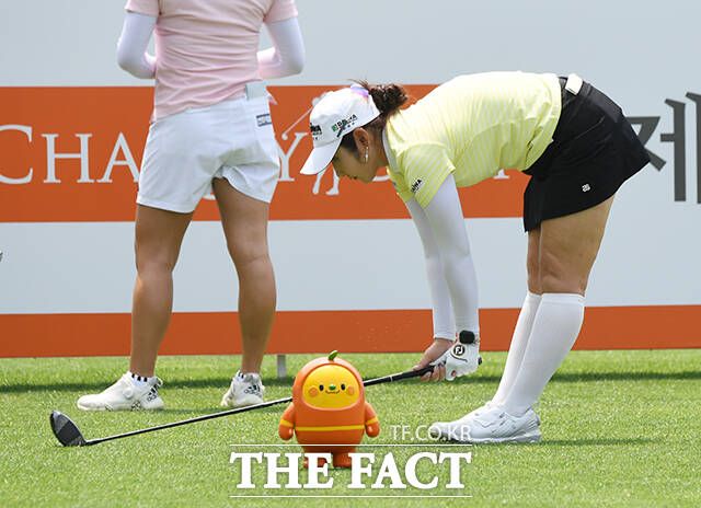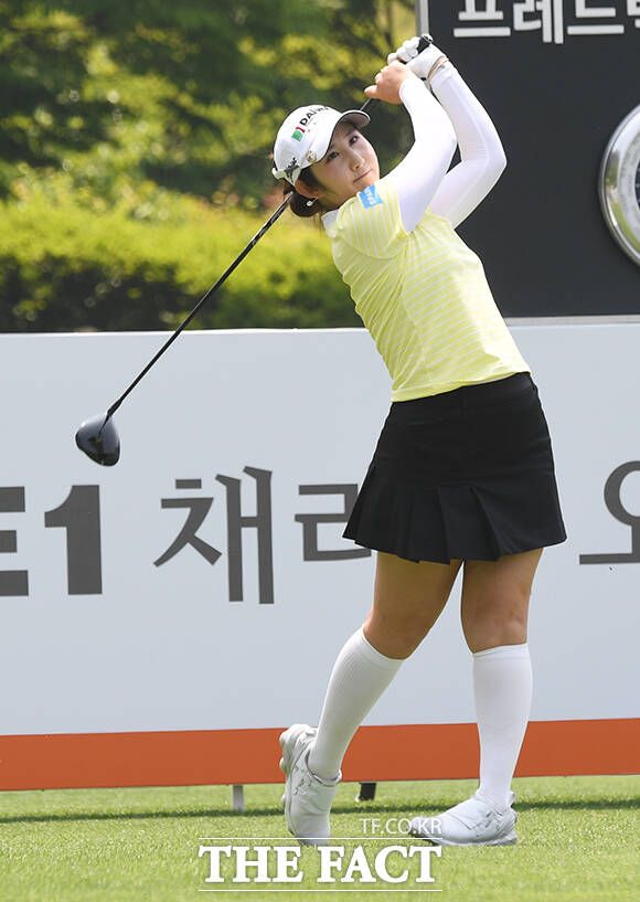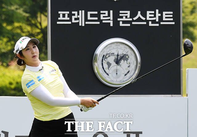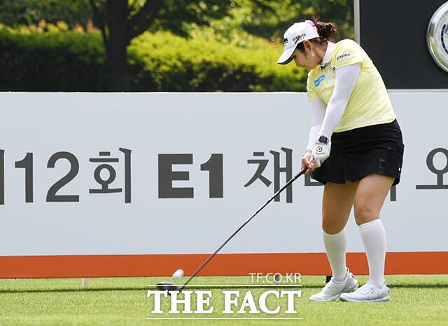 [더팩트ㅣ여주=배정한 기자] KLPGA투어 E1채리티 오픈 1라운드가 24일 경기도 여주시 페럼클럽CC에서 열린 가운데 배선우가 1번홀 티샷을 하고 있다.