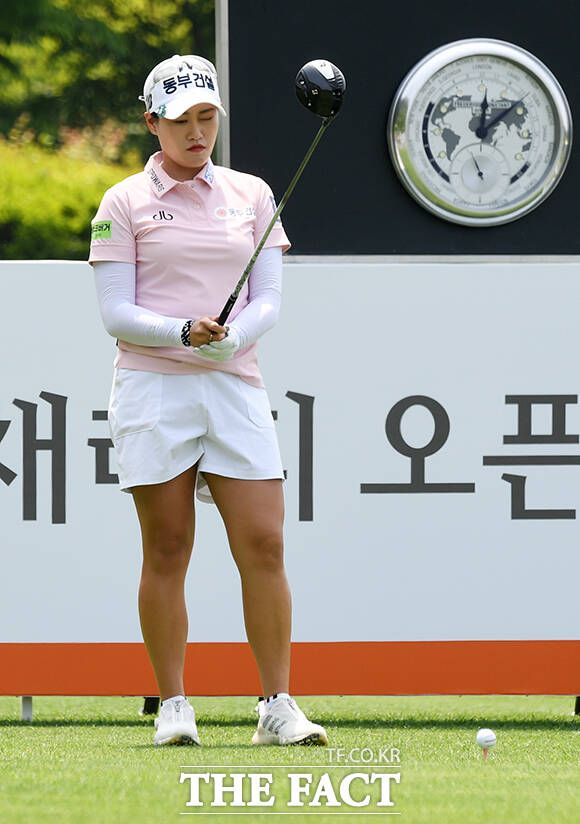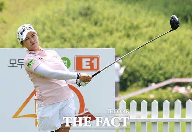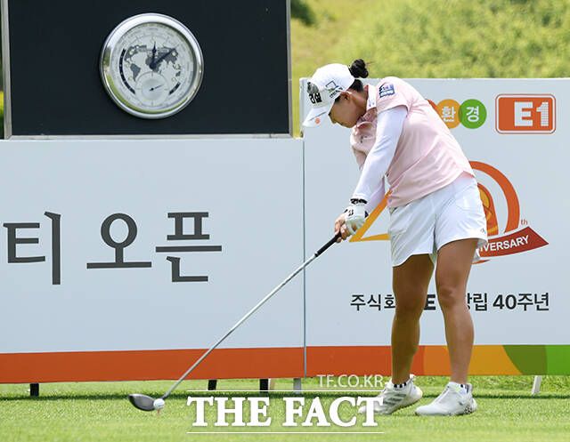 [더팩트ㅣ여주=배정한 기자] KLPGA투어 E1채리티 오픈 1라운드가 24일 경기도 여주시 페럼클럽CC에서 열린 가운데 지한솔이 1번홀 티샷을 하고 있다.