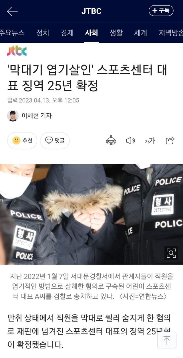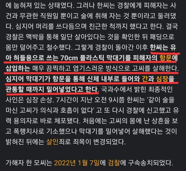 둘레3cm 길이70cm 가량의 플라스틱 막대기로 항문을 통해 엽기적인 방법으로 살해