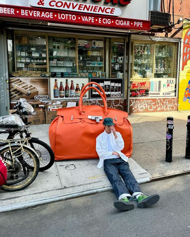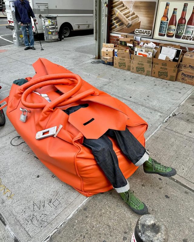 2017년 브랜드 ‘푸가지’를 설립한 트레버 고르지는 에르메스 버킨 백에서 영감을 받아 이 빅백을 만들었고, 제작 기간만 무려 2년이 걸렸다고 한다. 가방의 크기가 거대하기도 하고, 버킨 백의 우아한 라인을 잡기 위해 오래 걸린 것으로 보인다. 재밌는 이 빅백을 자세히 살펴보면, 에르메스 버킨 백의 상징이라고 할 수 있는 자물쇠 디테일이 보이는데, 마치 창고 자물쇠와 같이 공구를 이용해서만 자를 수 있을 것 같이 큰 크기이다. 또 그가 올린 이미지들을 살펴보면 가방이 워낙 커서 침낭 같이 사용할 수 있을 것 같다. 이 빅백 하나만 있어도 캠핑 준비물이 거의 해결되지 않을까? 이렇게 빅백의 장점을 극대화 해놓은, 이 제품은 아쉽지만 비매품이며 오직 그가 올린 사진을 통해서만 확인할 수 있다.