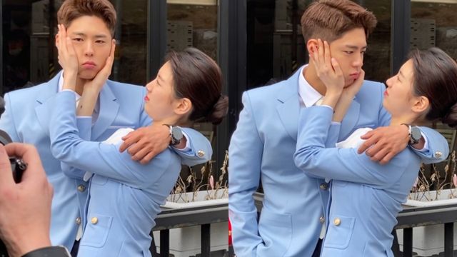 영화 속 정인(수지)의 집에 장식된 태주(박보검)와의 여러 커플 사진 중 하나로, 같은 유니폼을 맞춰 입은 승무원 사내 커플의 달콤한 데이트 현장을 포착한 사진이다.