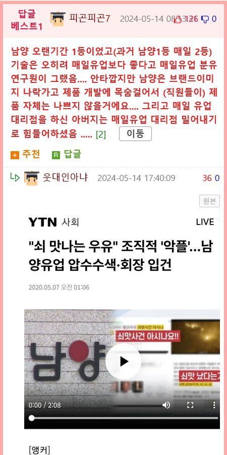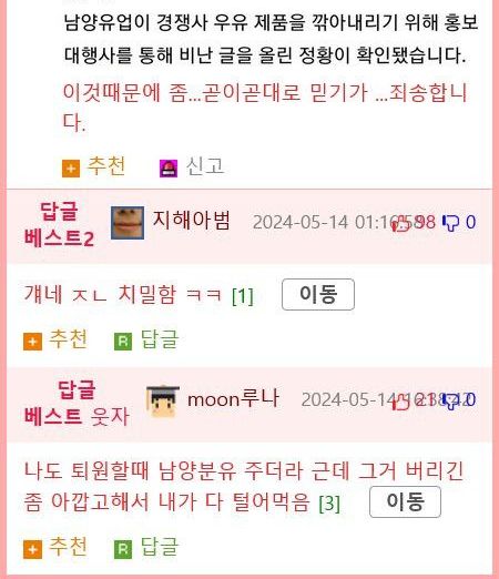 매일유업 근황글 참고