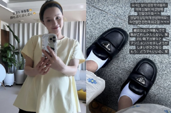 또한 아유미는 "요새는 발이 점점 부어오른다. 이제 신발이 이것밖에 안 들어간다. 편한게 최고다"라며 편안한 신발을 착용한 임산부의 일상도 공개했다.