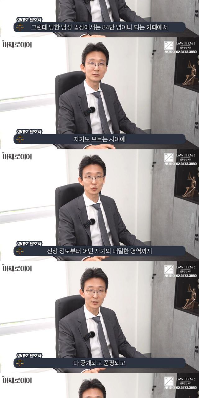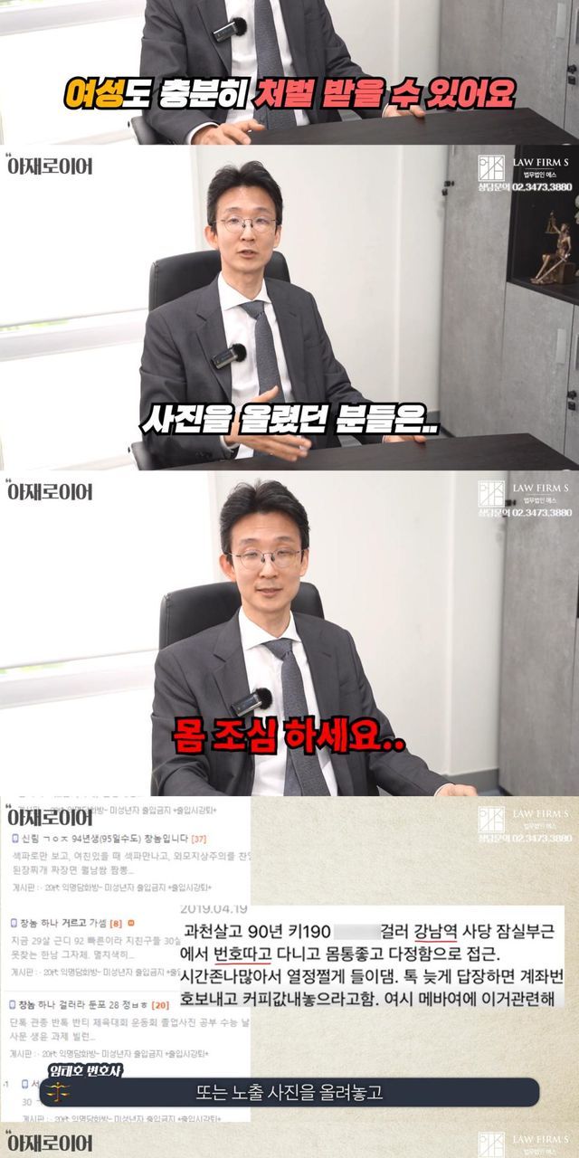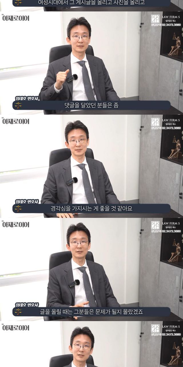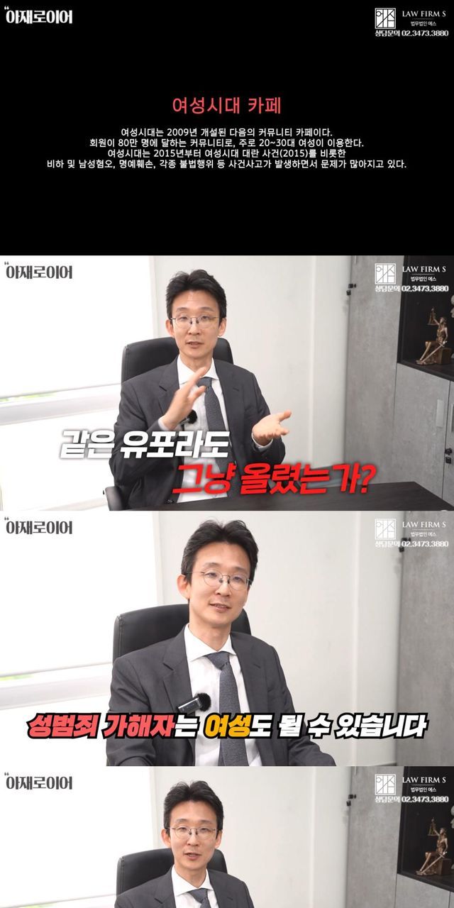 변호사는 성범죄 (가해자/피해자) 커뮤니티 운영중인 로펌 대표, "사진 올리고 낄낄대던 여성시대 회원들 몸 조심해야한다" 발언