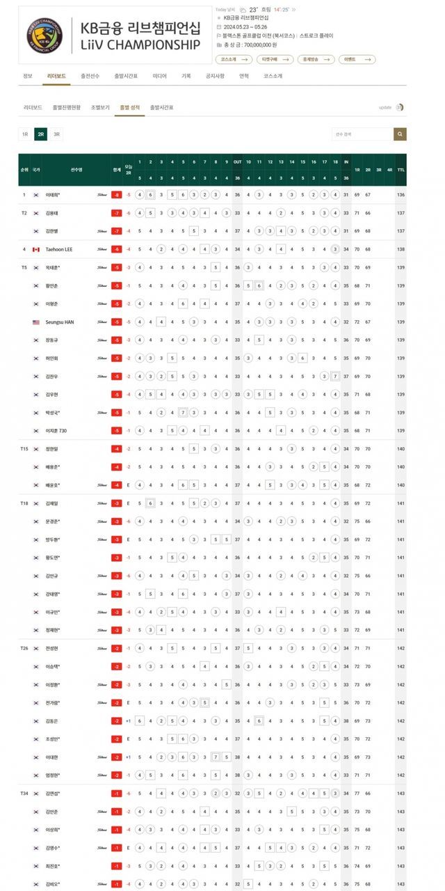 ▲KB금융 리브챔피언십 2라운드 순위