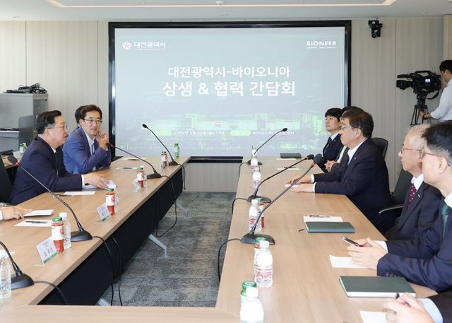 이장우 대전시장과 ㈜바이오니아 박한오 대표이사, 주요 간부들이 참석한 가운데 양 기관은 바이오 분야의 연구개발과 육성에 적극 공감하고 상호협력해 나가기로 했다.