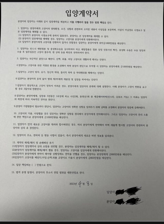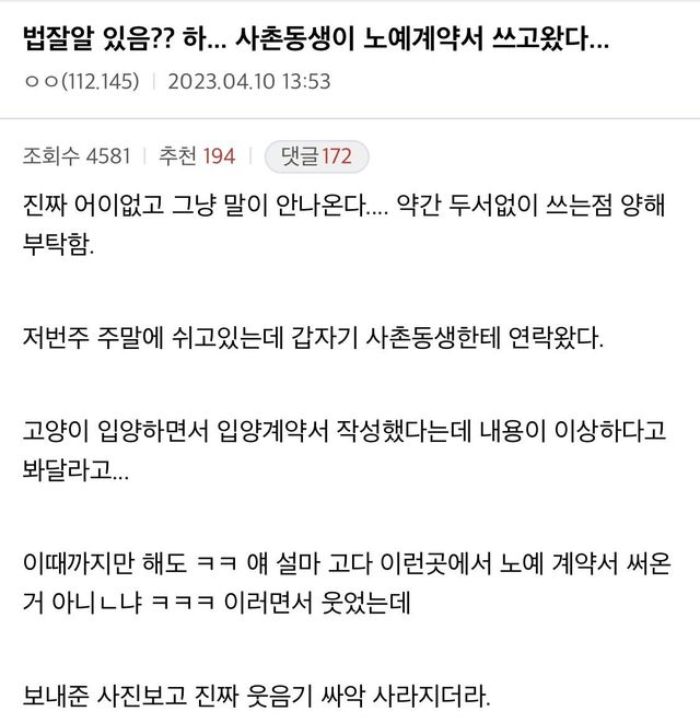 아래는 23년 4월 8일자 문제의 노예계약서