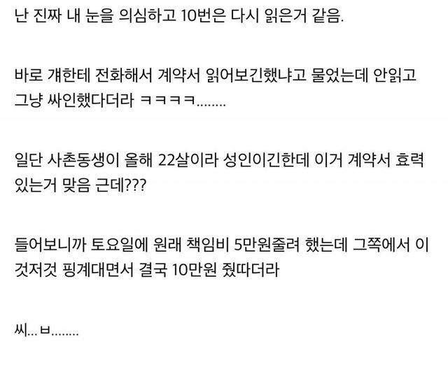 조항 하나하나 돈돈 안거리는게 없으며 화룡점정으로 책임비까지 두배로 올려서 10만원 받아쳐먹음