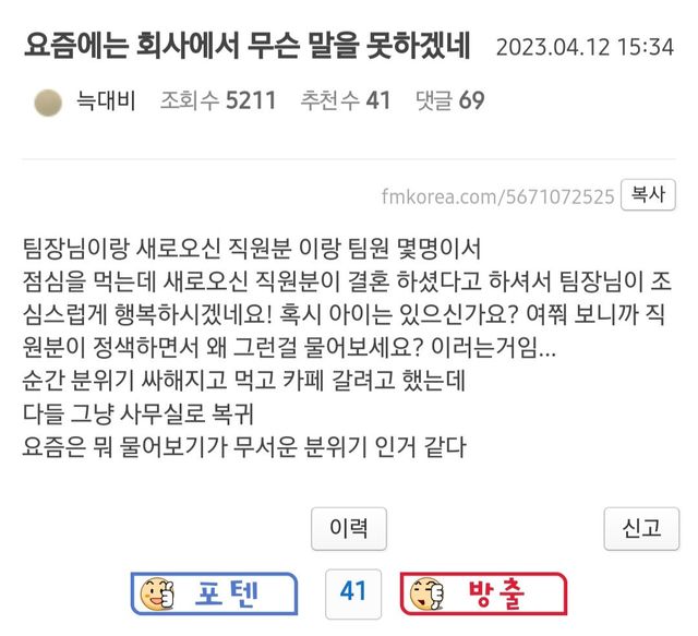 요즘은 난임부부들 많아서 아이 질문 하는거 조심스럽긴 한데