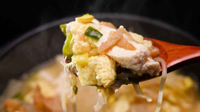 다음은 두부를 넣은 뒤 달걀물을 붓고 불을 꺼 그대로 잔열로 3분 익힌다. 달걀물은 한 번에 붓지 말고, 얇고 가늘게 부어준다. 이때 달걀물을 넣은 후 젓지 않아야 몽글몽글한 달걀이 된다.