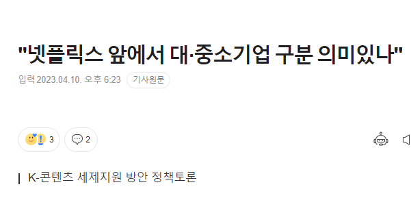 그래서 얼마전에 넷플릭스 앞에서 대중소 기업 의미 없다고