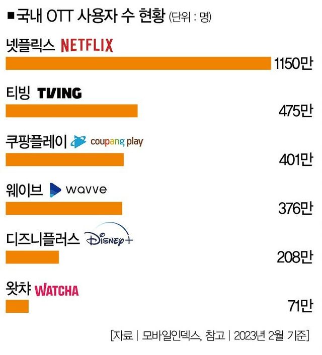 다른 OTT 가보면 오히려 더 컨텐츠가 없는게 현실이라 아직 그래도 압도적이긴함