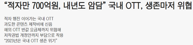 근데 실제로 국내 OTT기업들 적자 심하고