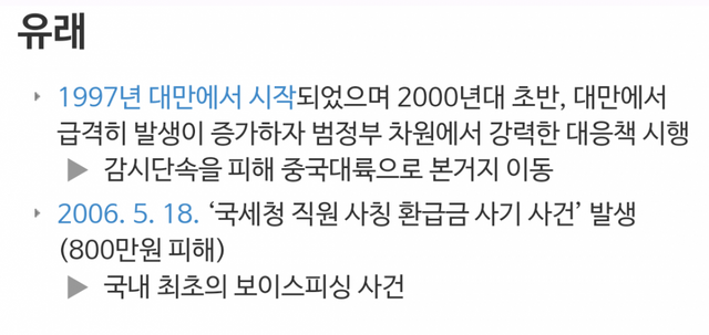 국내 최초의 보이스피싱은 2006년 5월달에 발생했는데