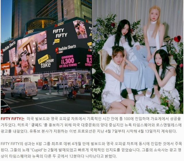 데뷔 4개월만에 빌보드 핫100에 올라간것도한국 아이돌 최단기록임