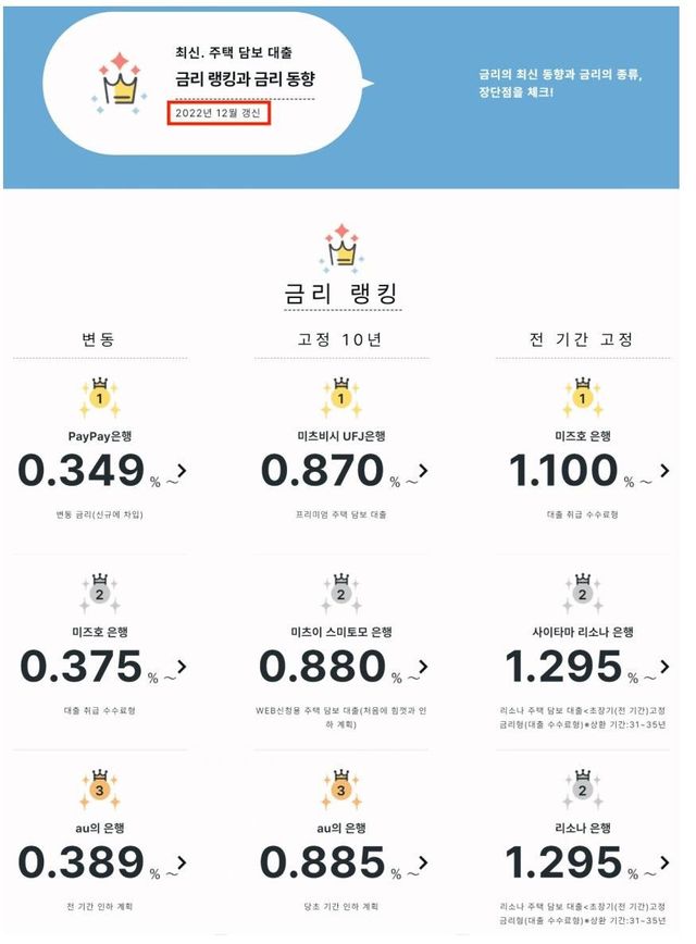 일본 주담대 금리 안믿는 사람이 많아서 올린다.