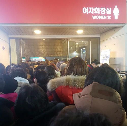붐비는 여성 화장실 모습. 사진= 픽처랜드 갈무리© 제공: 세계일보