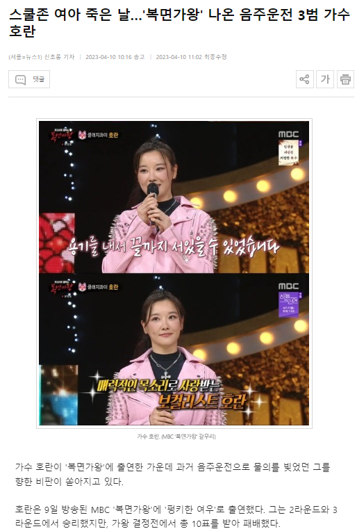 “대체 누가 보고 싶어 한다고 호란씨를 출연시키냐. 대체 왜 음주운전을 3번이나 한 사람을 방송에서 봐야 하는 거냐. 음반 나온다고 홍보까지 하는데 생각이 있는 거냐”