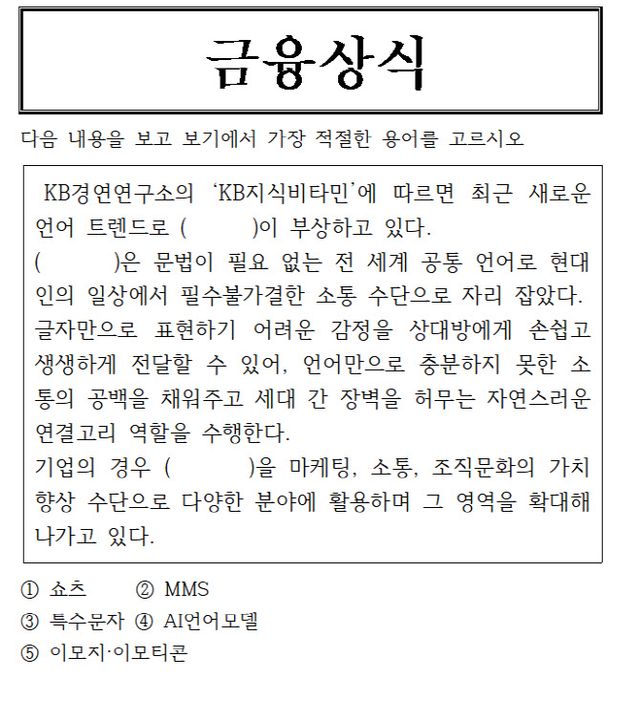 정답은 5번 ‘이모지·이모티콘’입니다.